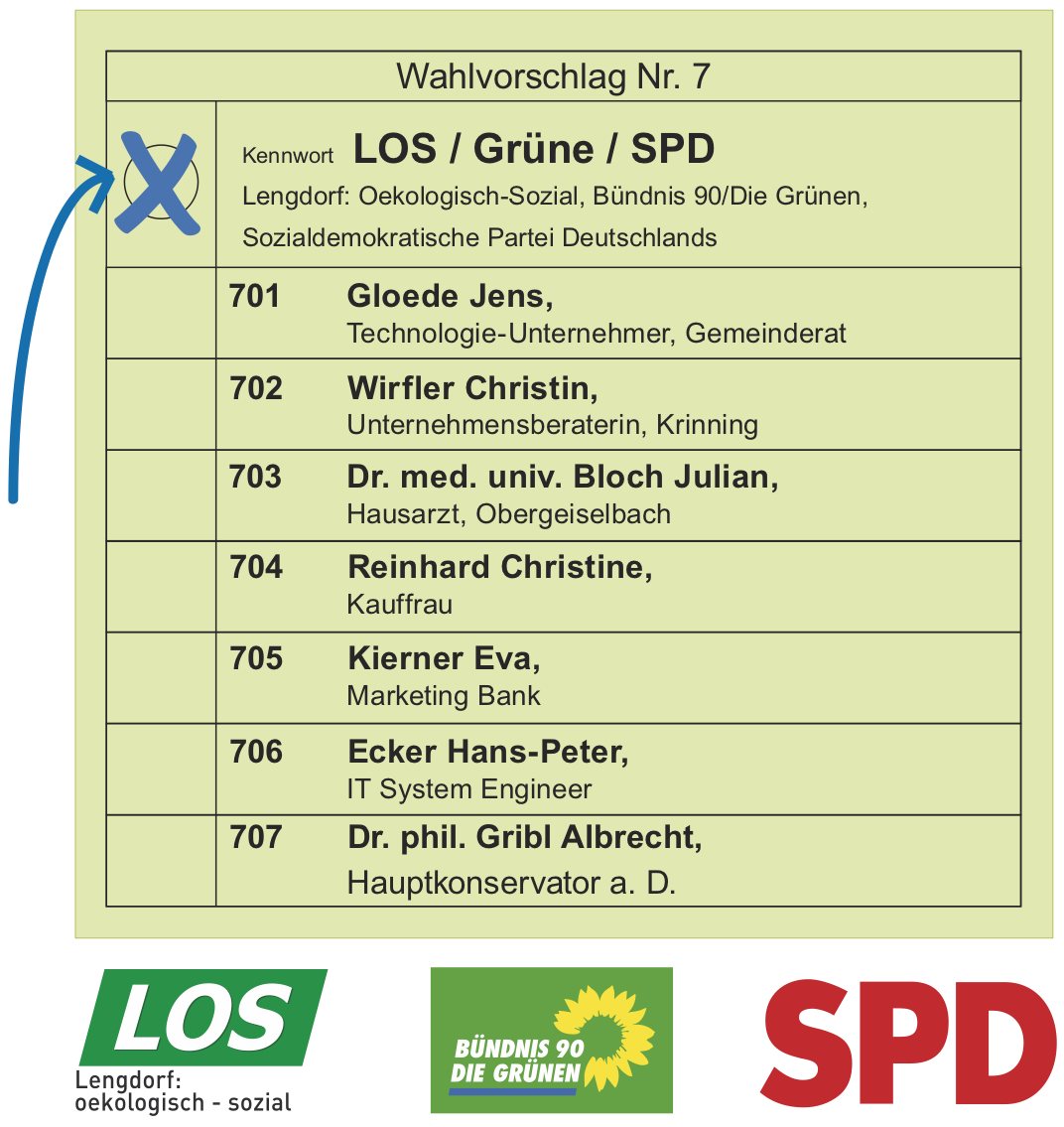 Die erweiterte Liste LOS-Grüne-SPD hat am 10.12.2025 ihre Aufstellungsversammlung im Sportheim Lengdorf durchgeführt.
